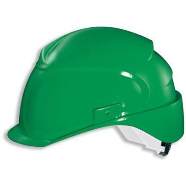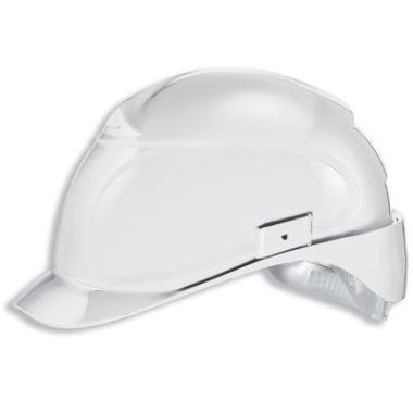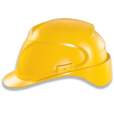 Deze veiligheidshelm met schuifinstelling biedt uitstekende hoofdbescherming. De HDPE helm heeft een gemakkelijk vervangbare badstof zweetband en drie ventilatiegaten aan weerszijden.