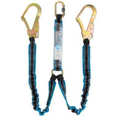 OXXA Makalu 4064 Y-vanglijn bestaat uit valdempe, die het effect van de daling tot minder dan 6kN vermindert, polyester elastische vanglijn, stalen karabijnhaak en twee stalen steigerhaken met automatische vergrendeling. Heeft een lengte van 1,4m – 2m.